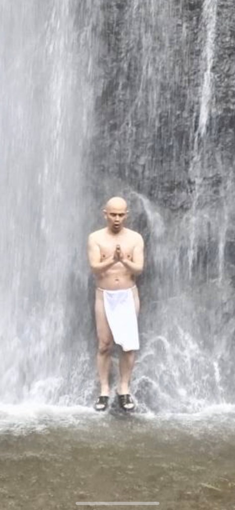 本当にそれだけでした。日々至らない自分を見つめて仏教の、そして法華経の教えで少しでもより魂を磨いて人として成長したい、またその教えを共有したいという思いがあることを再発見したのでした。そういった意味では改めて実際に行動する「行」というものは頭の中をいったん空っぽにしてくれるものなのかと感じました。たった今のこの瞬間、この鼓動、そしてひざの震え(笑)すべてがただただ有り難い、いのちって素晴らしいなと感動した滝行でした。