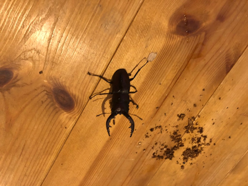 今朝はお勤めに行く前に庫裡や本堂周りの蜂の巣がないか確認したりひさしのしたに何か巣ができていないか確認していたところ、なんとクワガタがいました。親指ほどの大きさですが立派なハサミを持っています。早速息子と捕獲しました。いずれ野山に返すつもりですが、いっときカブトムシとクワガタにおおはまりした息子はもうしばらく一緒にいたいようです。