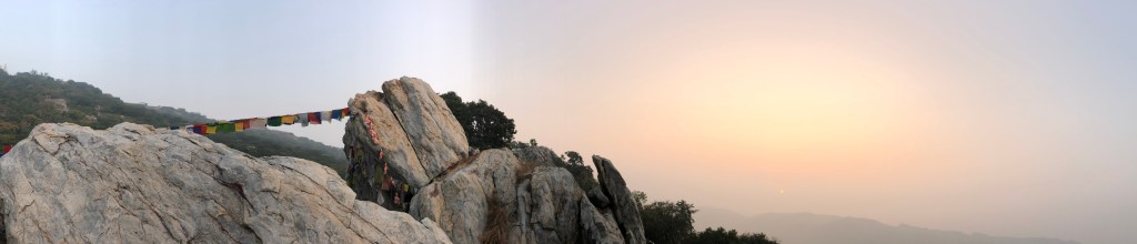 まだ暗い山頂でお経を唱えているうちに後続の参拝者が集まってきました。ちょうど日の出が上がるころ次のグループにその頂上の礼拝場所をお譲りして朝日を待ちました。日の光を浴びて一日が始まることへの感謝とこの場所で法華経読誦の機会をいただき仏法興隆への誓いを新たにしました。