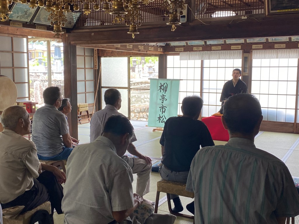 窓を全開にしてクーラーがないお堂で手持ちの扇風機を全て使いましたが、暑い1日でした。「おひねり」を頂戴!とお願いしたところ、それは「歌舞伎」などで使われる用語だそうで、落語では「ご祝儀」というそうです。今後の大活躍に期待しながらお開きとなりました。