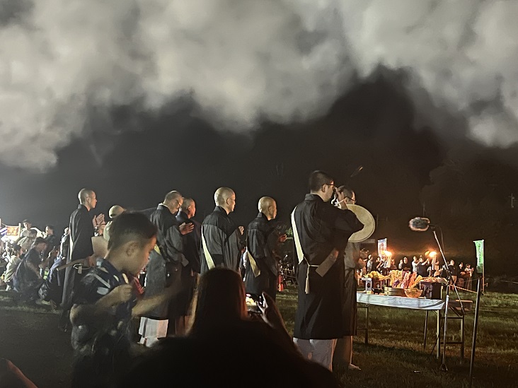 立ち上る煙は夜空に高く上り消えていきます。数々の供養をしてきたご先祖様にご回向を捧げて送りだします。燃え盛る炎はやがて大きくなり山間を照らしました。